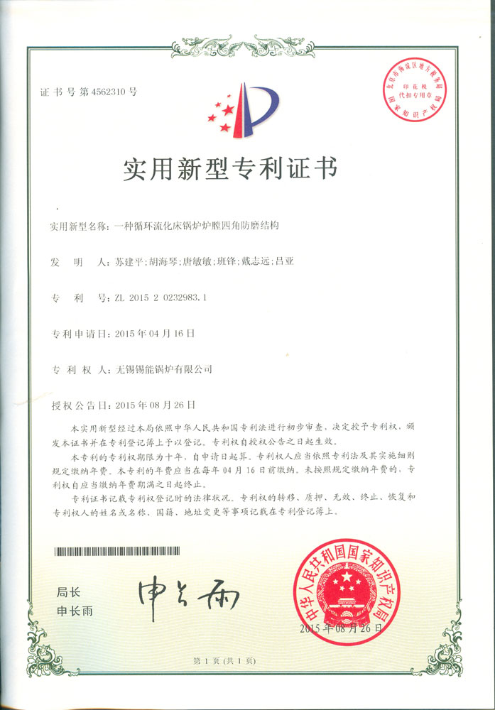 • 实用新型201520232983.1一种循环流化床锅炉膛四角防磨结构